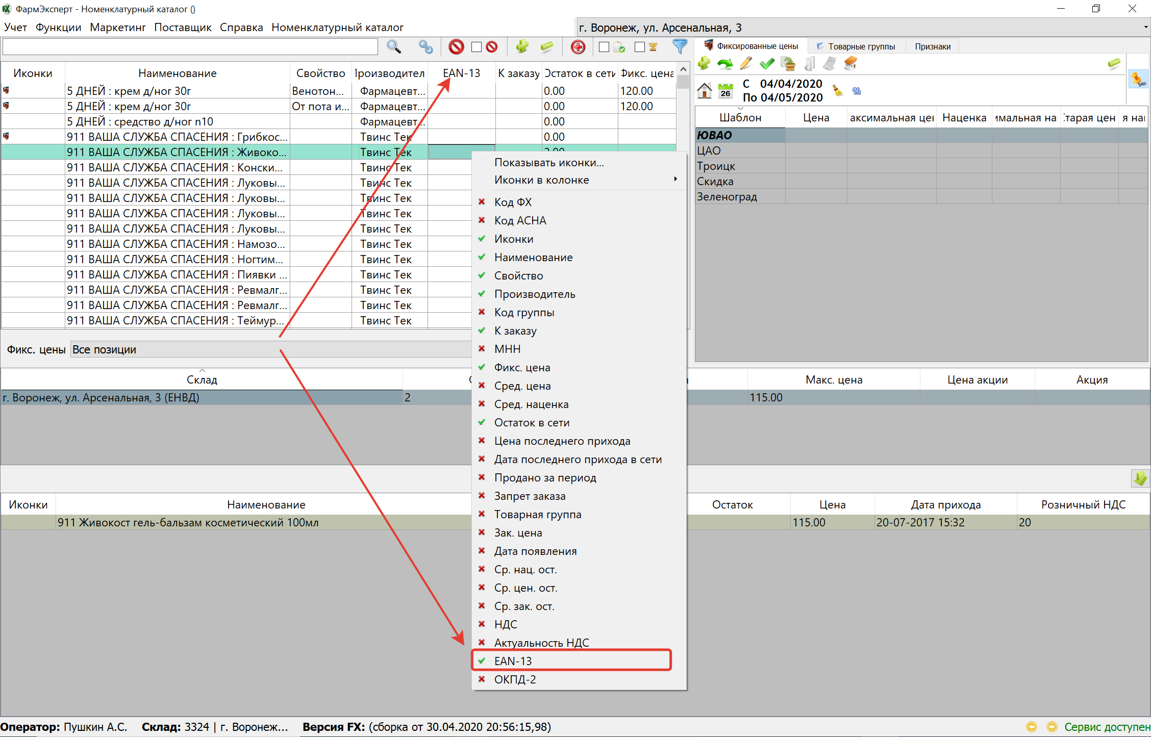 Номенклатурный каталог позволяет присвоить для каждой записи код EAN-13. Для этого в Номенклатурном каталоге должна быть включена соответствующая колонка