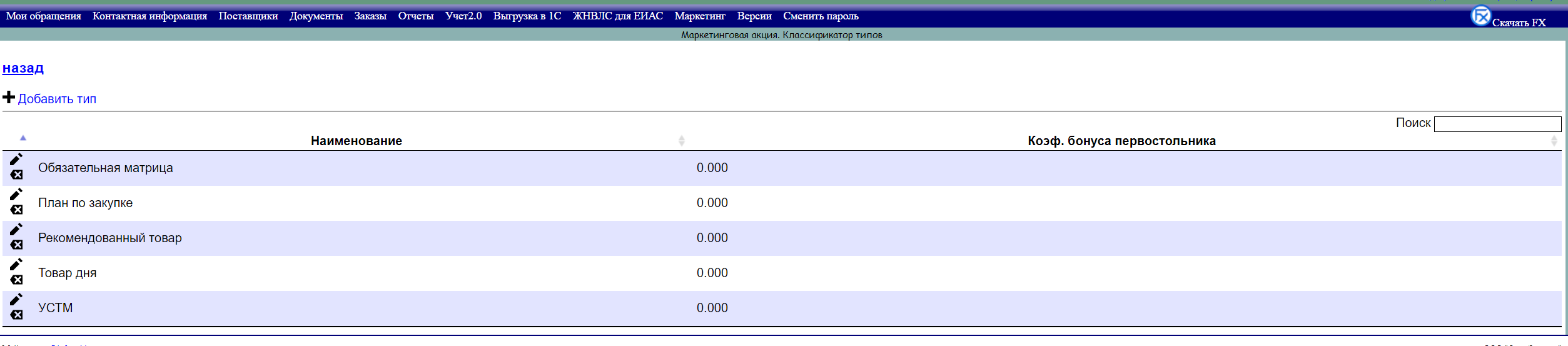 По каждому типу маркетинговой акции может быть настроен коэффициент, применяемый к Бэк/Бонусу товара. Получаемый бонус считается умножением заданного Бэк/Бонуса товара на коэффициент бонуса первостольника. Коэффициент применяется при выбранном принципе начисления бонусов операторам за продажу акционных товаров «Как бонус в руб. по строке маркетинговой акции».