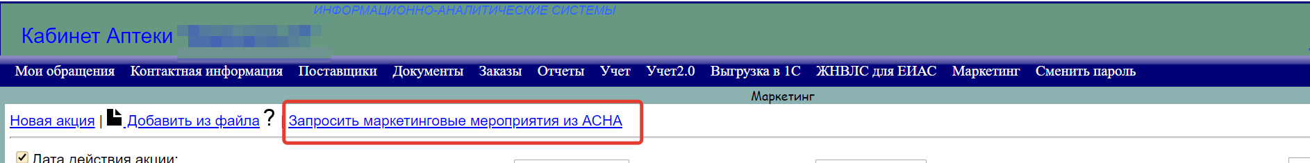 В этом случае аптека в своем личном кабинете infoas.ru может загрузить актуальные акции АСНА