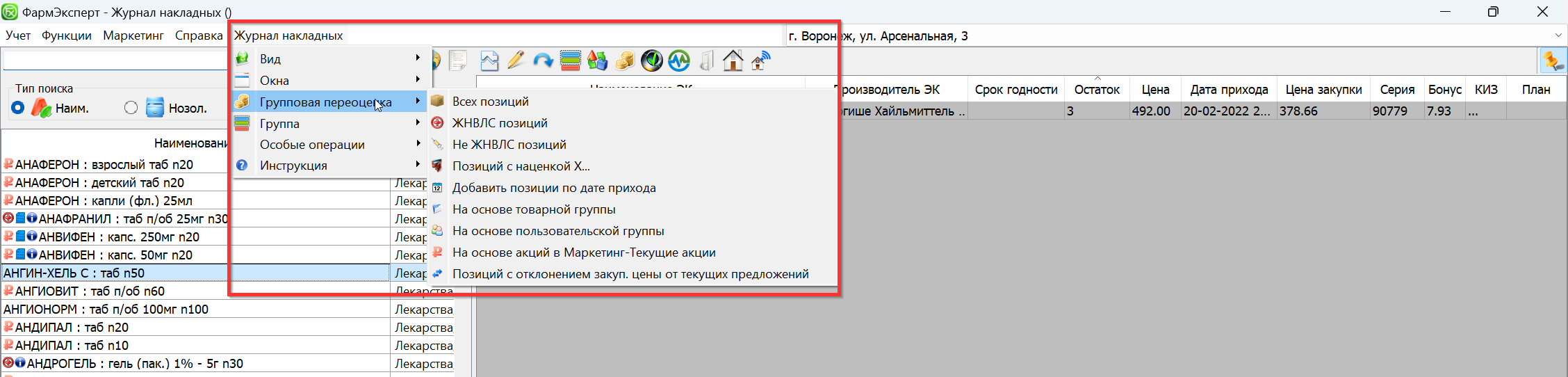 - ЖНВЛС, Не ЖНВЛС. Для переоценки только данной группы товара