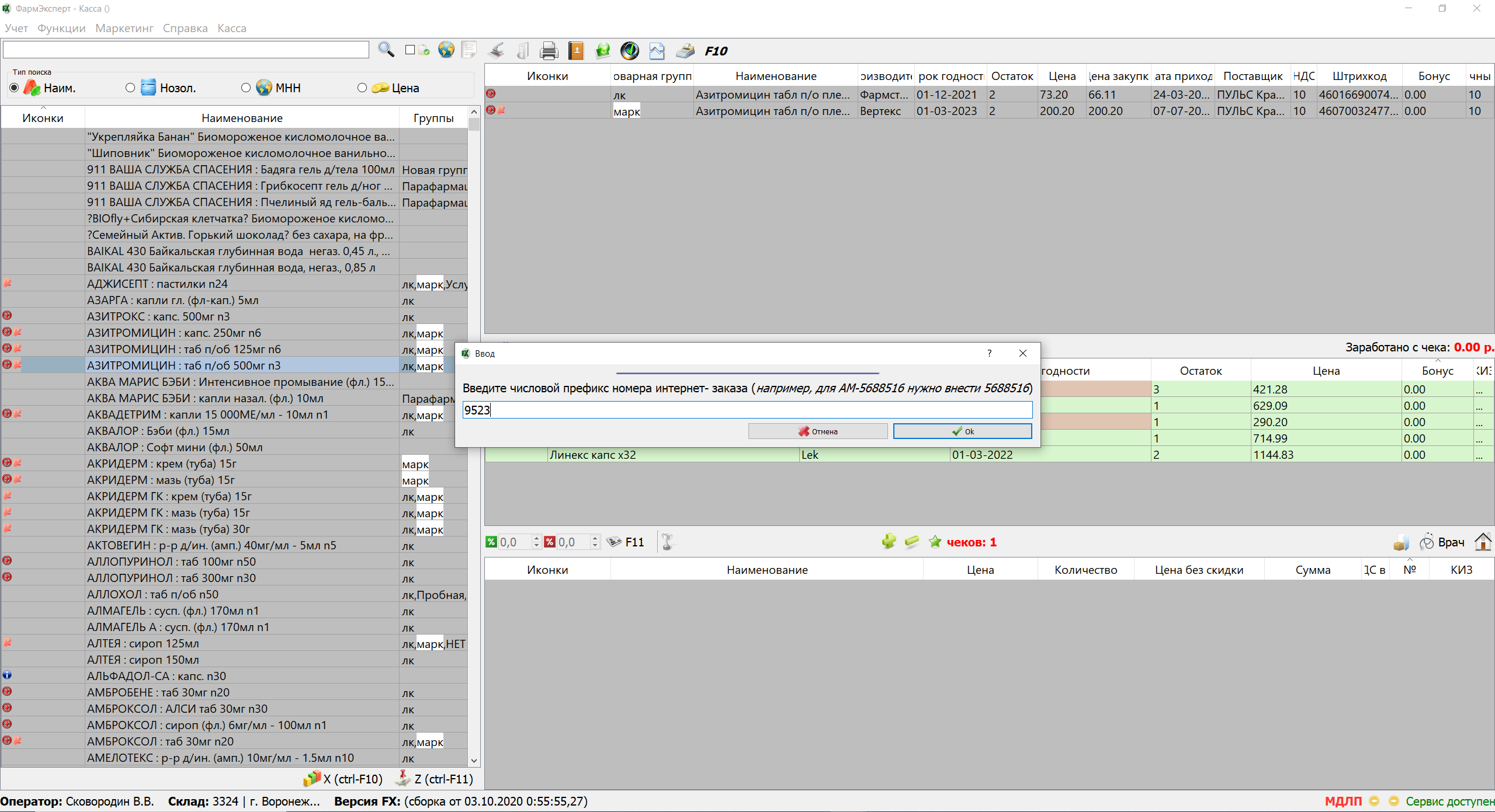 ФармЭксперт найдет интернет-заказ и добавит его в текущий чек, после чего чек можно «провести».