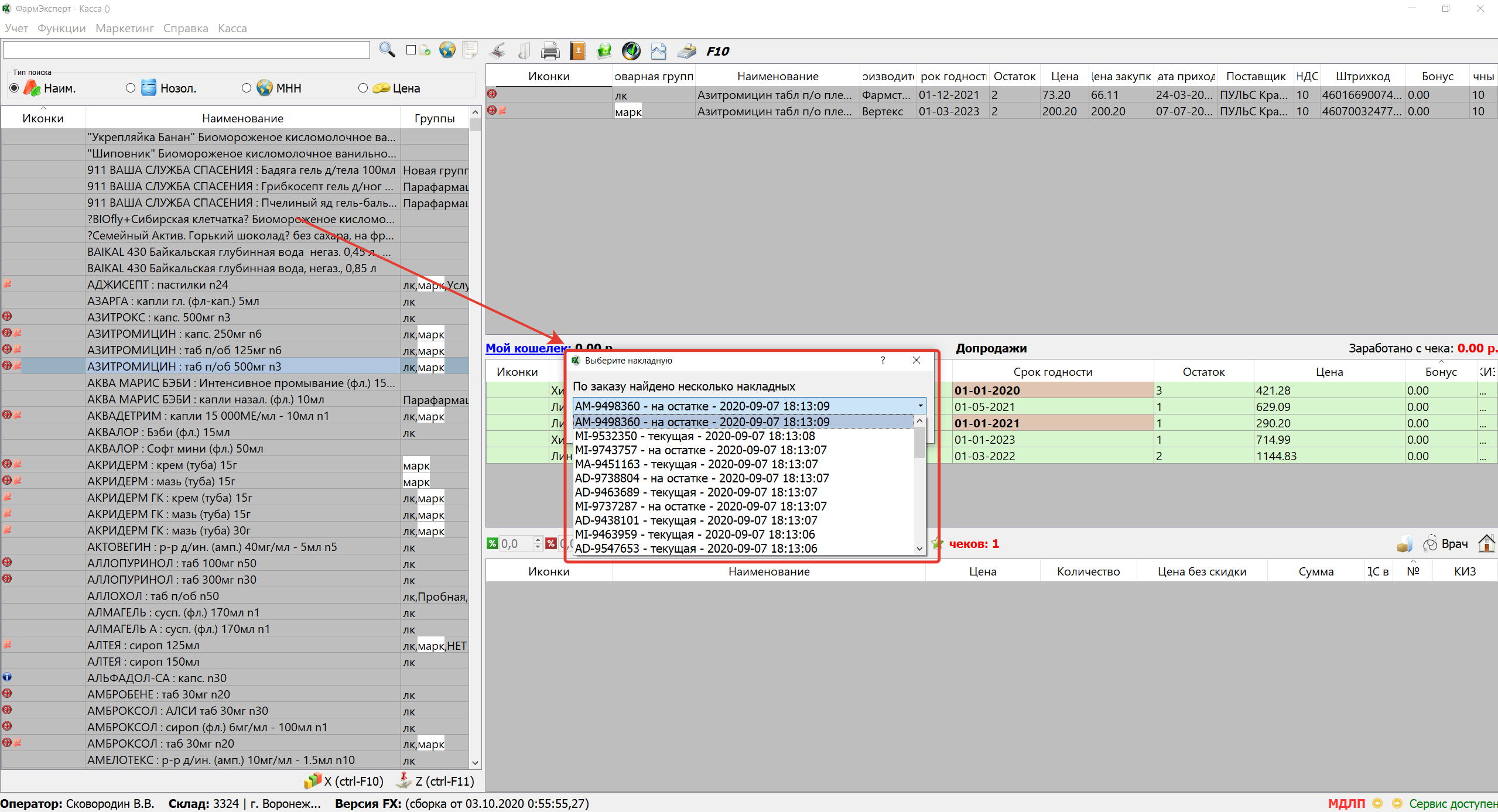 Если же найдено несколько интернет-заказов, удовлетворяющих данному номеру, то ФармЭксперт предложит выбрать нужный.