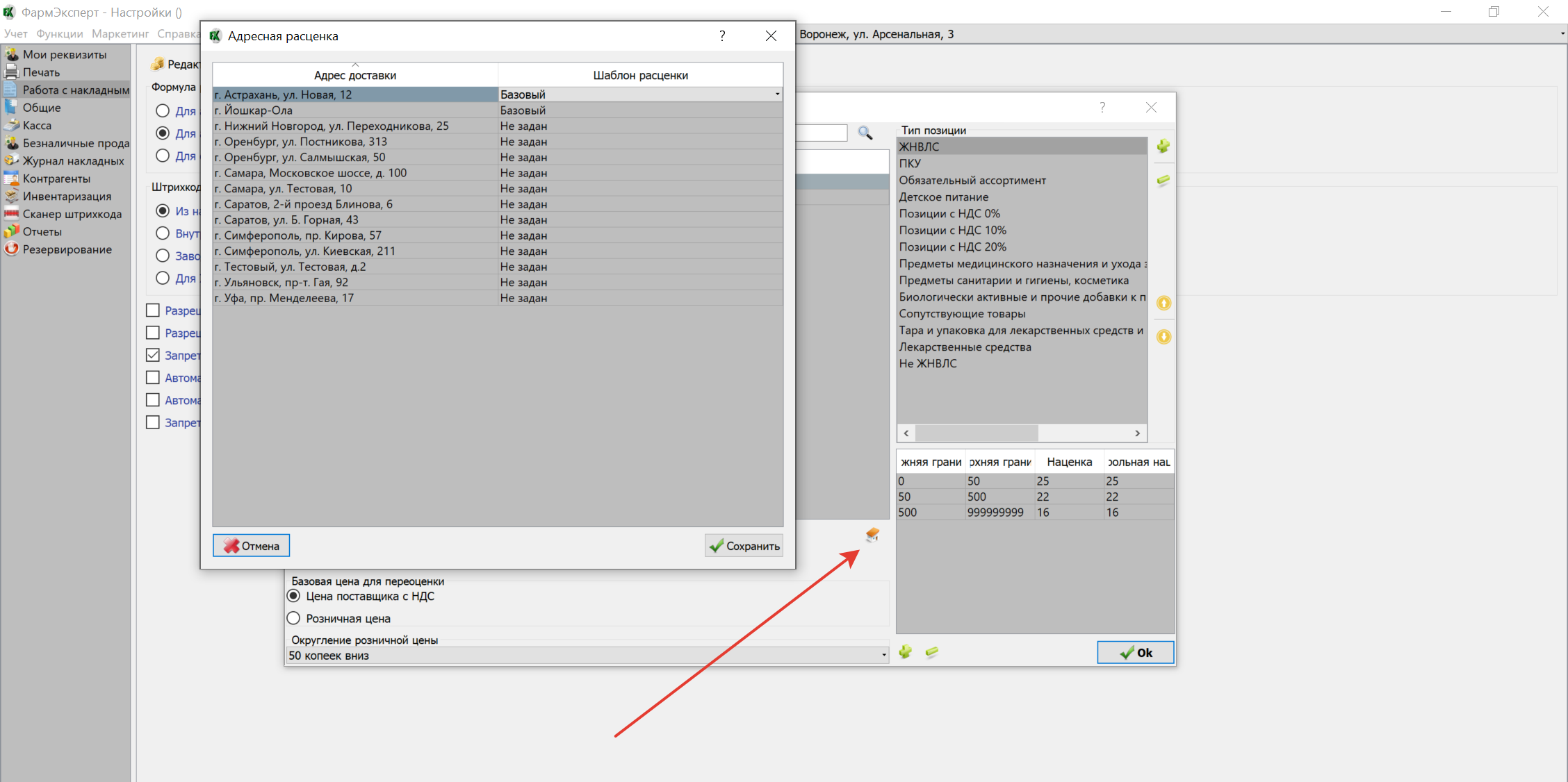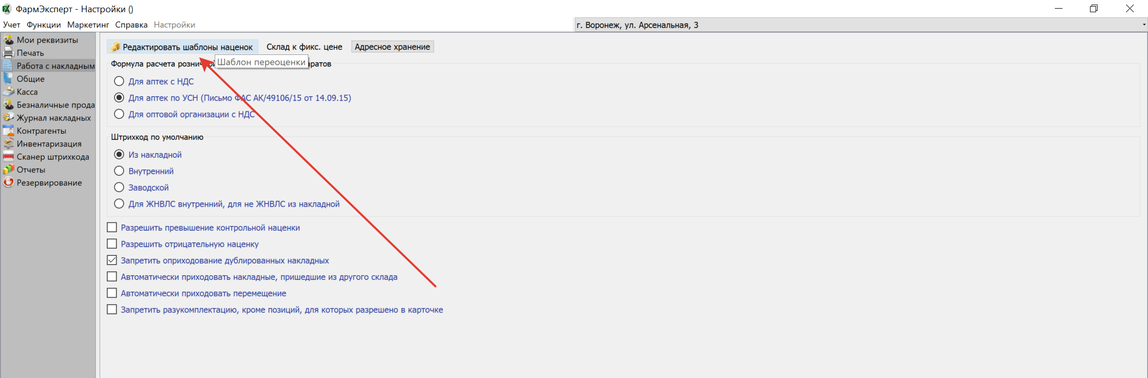 Настройки расценки по шаблону фиксированных цен производятся в разделе Настройки-Работа с накладными. Кнопка «Редактировать шаблоны наценок»