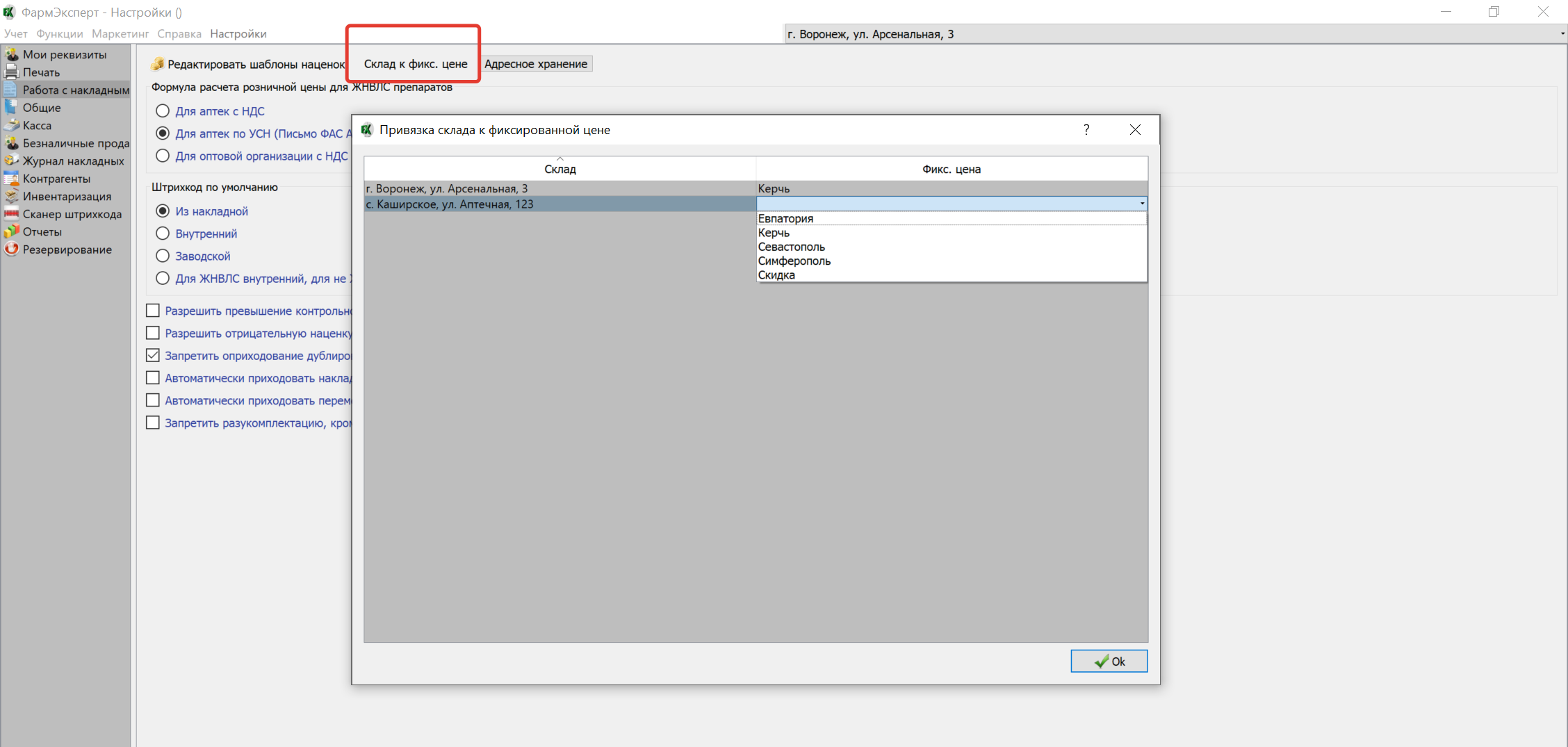 Для использования переоценки склада с использованием шаблона фиксированных цен, необходимо установить соответствие склада с шаблоном фиксированных цен