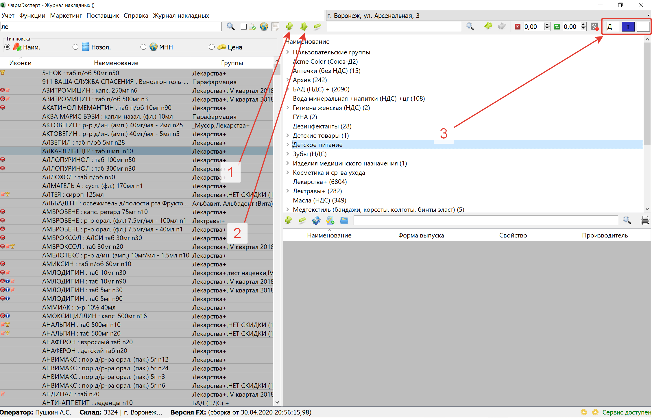 - выбрав нужную позицию в левой части каталога и нажав кнопку 1 на клавиатуре.