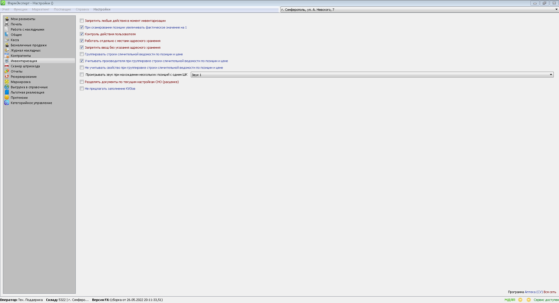Обновлённая статья находится в Фармэксперт.Учёт / Настройки / Настройки программы по разделам / Инвентаризация