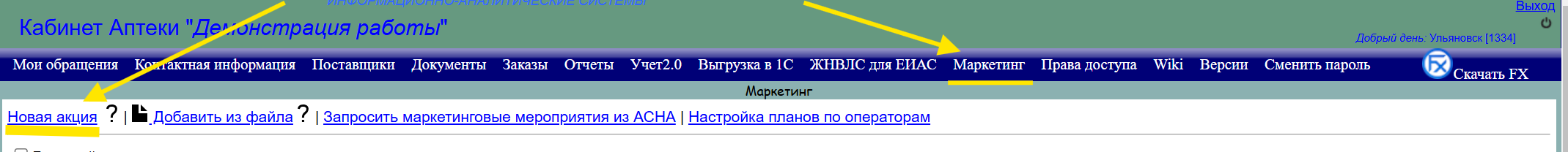 Маркетинговые контракты производителей могут приходить как автоматически от фармассоциаций (такие как АСНА, Созвездие), так и могут быть загружены вами. Чтобы самостоятельно создать акцию: