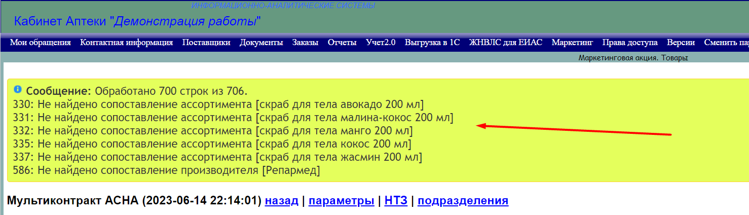 Для сопоставления загружаемых наименований в файле ФармЭксперт использует коды поставщика из соответствующей колонки, а также проверяет возможность сопоставления по наименованию. О строках файла, сопоставление по которым не удалось найти, сайт сообщит вам. И их нужно будет внести в акцию вручную;