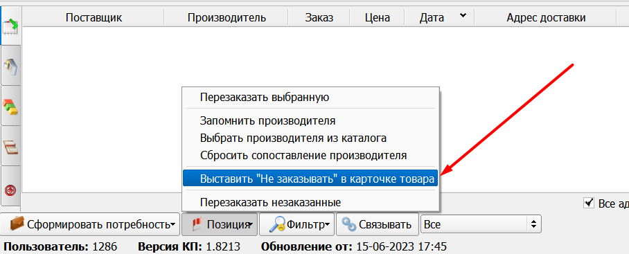 Выставление запрета заказа из программы заказа, раздел автозаказ, возможно для любого сотрудника, т.к. вход в программу заказа происходит без авторизации оператора. Также в программе заказа может быть установлена настройка «Разрешить заказывать запрещенные позиции», для заказа запрещенных позиций и позиций вне НК. Поэтому для аптечных сетей с централизованным управлением ассортиментом целесообразно в аптеках оставить только право формирования потребности, а сам заказа на поставщика отправлять из офиса