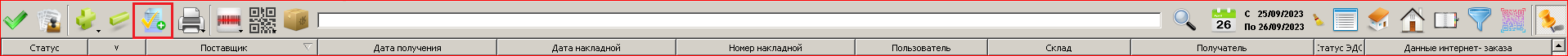 - Далее. Если поставщик прислал накладную в ФармЭксперт и указал признак маркировки для позиций. Внесите КИЗ'ы в накладную, оприходуйте её. Кнопку «Отправить КИЗ» использовать не нужно. Она предназначена только для работы с маркировкой лекарственных средств.