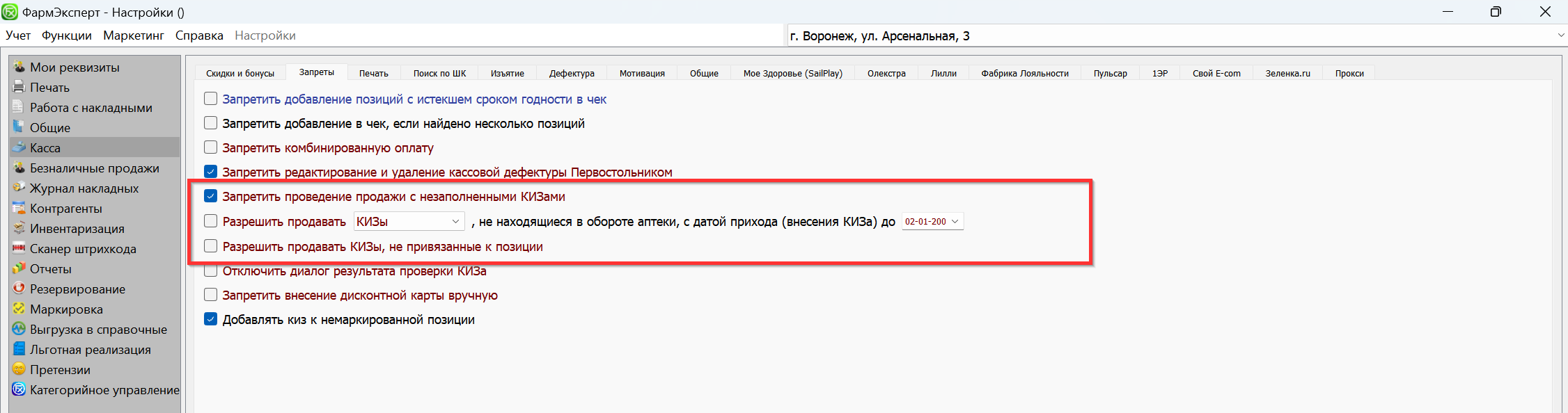- установить запрет продажи с незаполненным КИЗ;