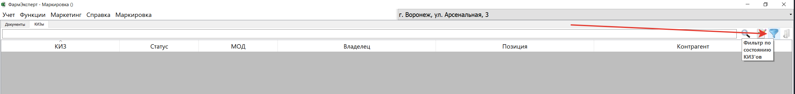41. В окно с отображением списка КИЗов, привязанных к позиции, добавлена фильтрация по МОДу. Это, к примеру, помогает разобраться с правльной передачей КИЗов при перемщеении товара