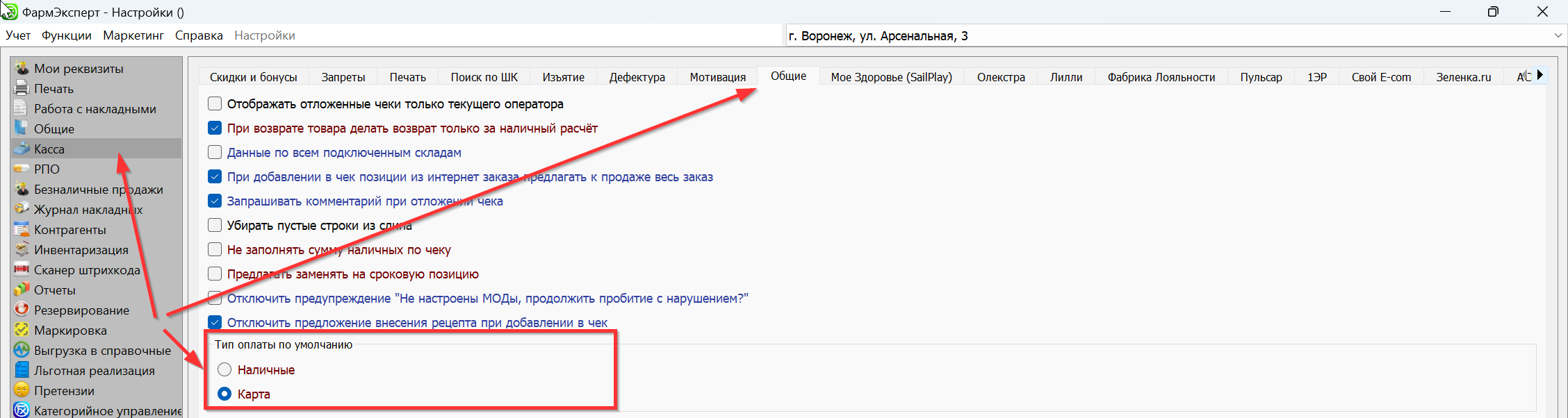 - Для помощи первостольнику в выборе верного типа оплаты для проведения чека добавлена настройка "тип оплаты по умолчанию". Для интегрированных банковских терминалов установка типа оплаты по умолчанию «оплата картой» снижает практически до нуля человеческий фактор в выборе не верного типа (карта/наличные);