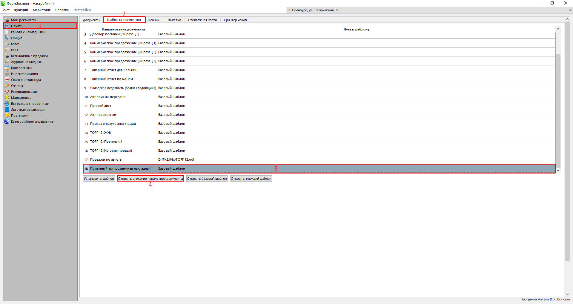 - Появилась возможность настроить произвольный вид документам для розничной накладной. Данное решение реализовано на основе уже используемых в других документах шаблонов файлов odt. Чтобы произвести настройку, необходимо перейти в: Учет-Настройки-Печать-Шаблоны документов. Затем, выбрать «Приемный акт (розничная накладная)» и нажать на «Открыть базовый шаблон». Описание порядка формирования шаблона можно посмотреть нажав на кнопку "Открыть описание параметров документа". После создания шаблона, его необходимо сохранить и выбрать в качестве действующего. Сделать это можно в этом же разделе, нажав на кнопку «Установить шаблон».