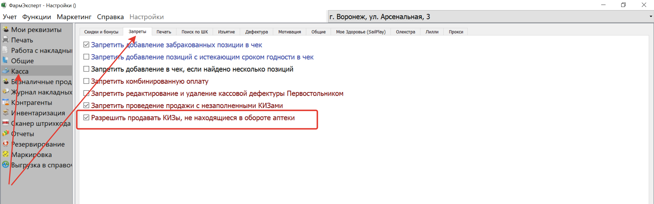 2. Опция, разрешающая продавать КИЗы (в соответствии с рекомендациям МинПромТорга и ЦРПТ), не находящиеся в обороте аптеки, вынесена в общедоступные настройки