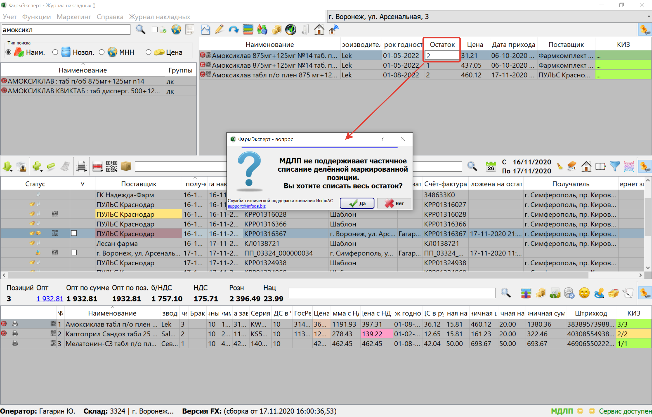 16. Закрыта возможность списывать часть маркированного товара из-за отсутствия поддержки данной функции со стороны МДЛП.