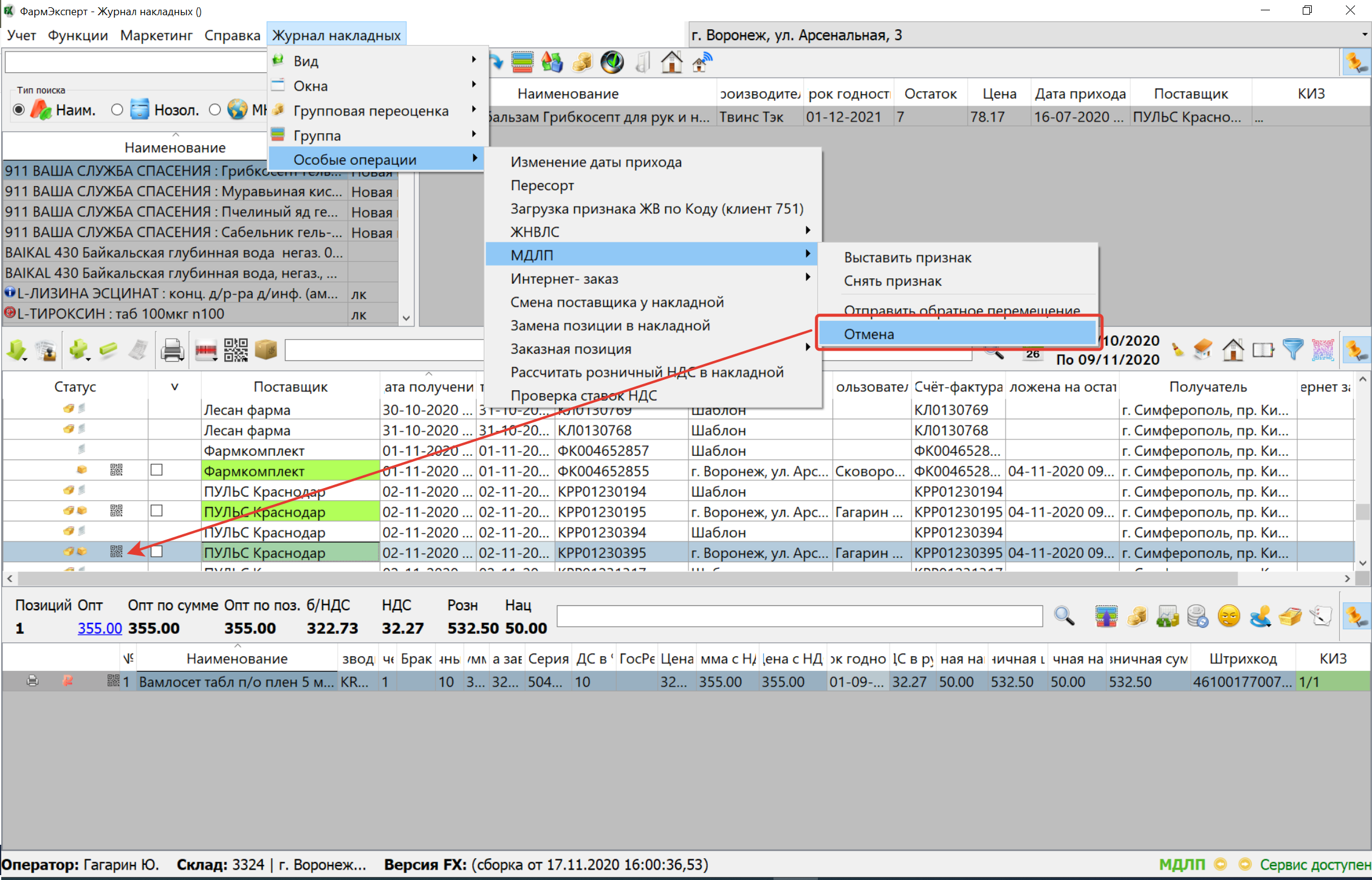 20. Отмена отправленного в МДЛП документа стала доступной для всех операторов, которые могут работать в журнале накладных.