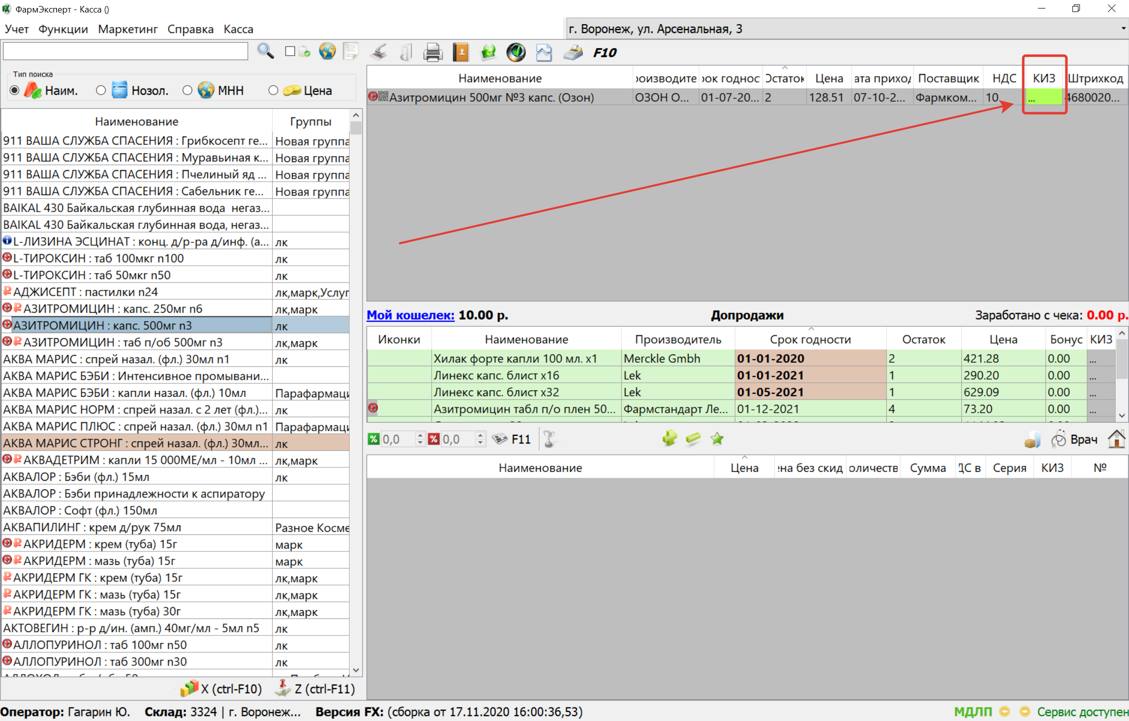 21. В раздел Касса добавлена подсветка колонки «КИЗ» аналогично подсветке этих данных в контенте накладной журнала накладных.