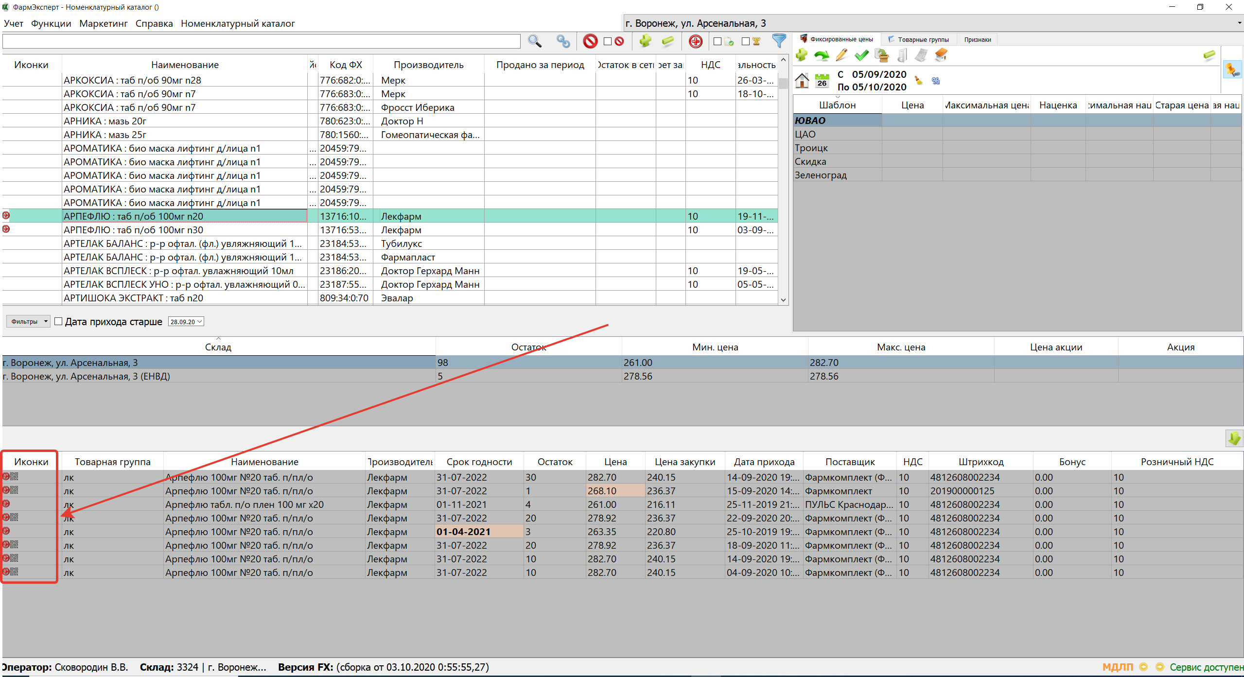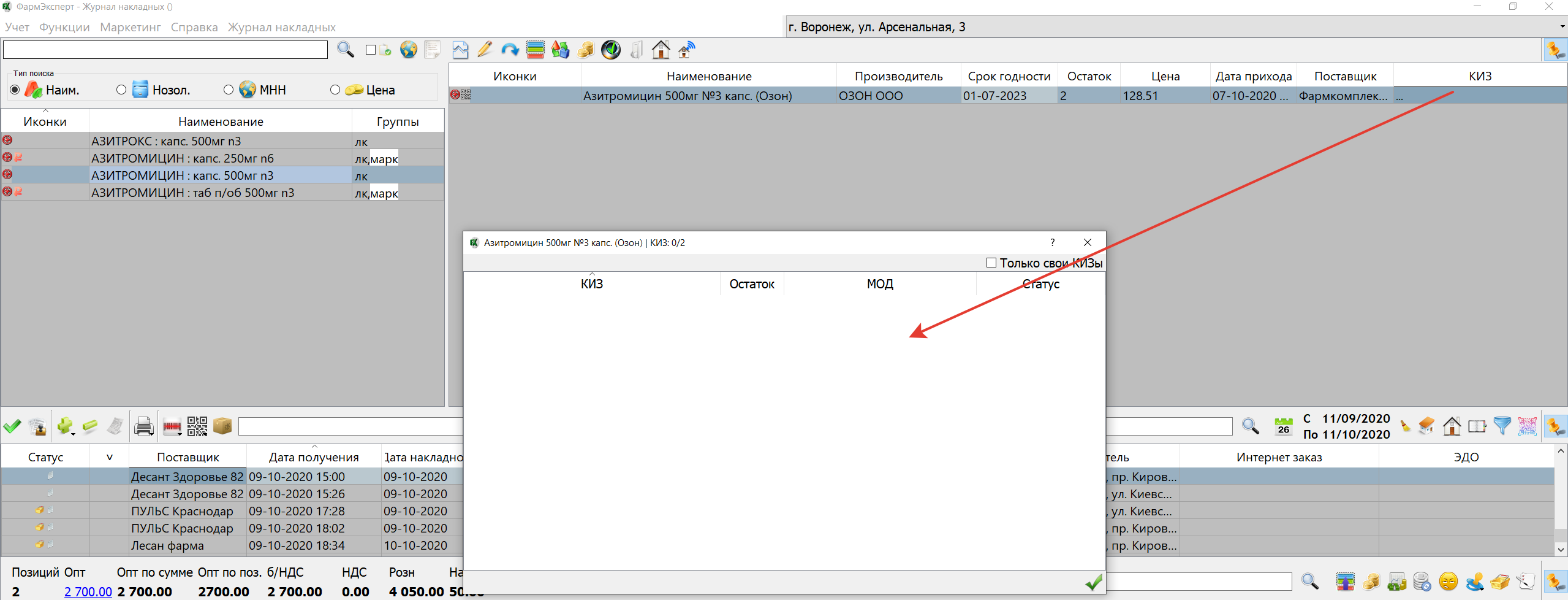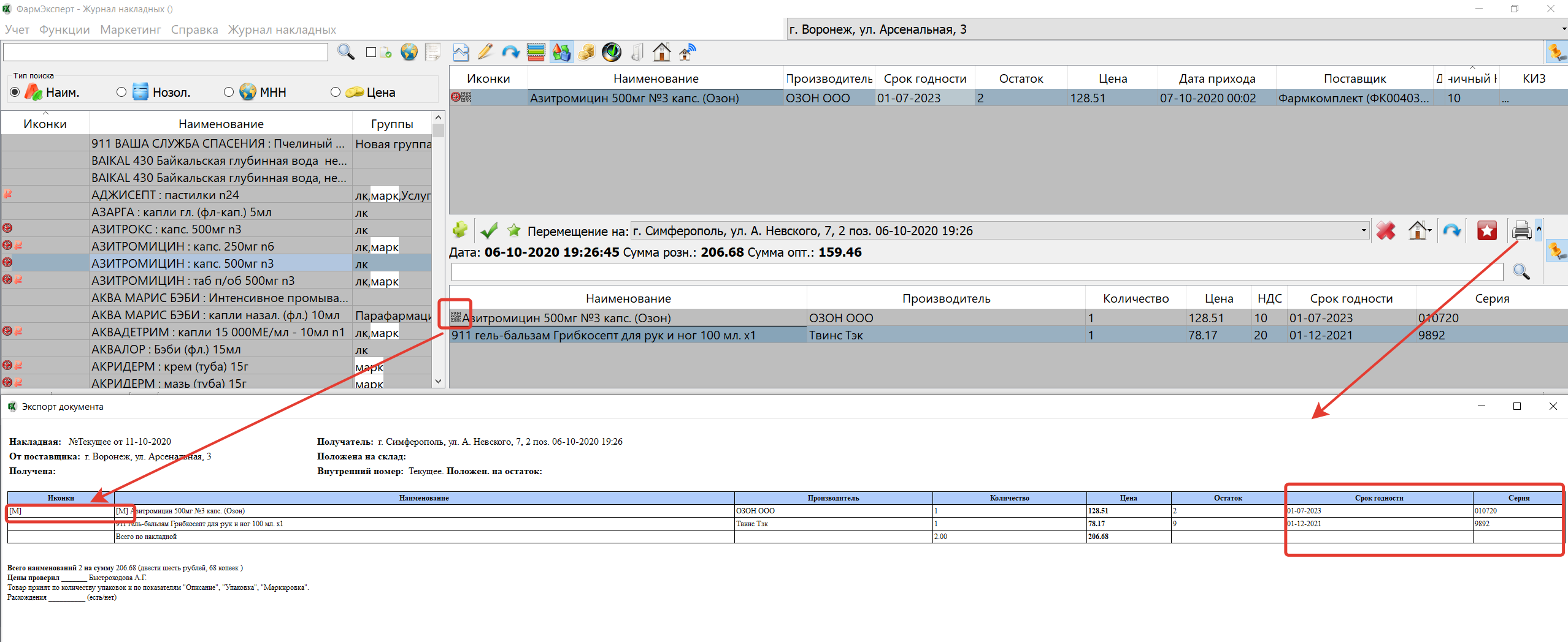 74. При внесении кодов маркировки в позицию накладной случается ситуация, при которой упаковок с нанесённым кодом маркировки больше, чем количество по данной позиции в накладной. Это может быть вследствие того, что часть этих упаковок, которые физически имеются в аптеке, не находятся в обороте МДЛП (выпущены до 01.07.2020). Поэтому оператору ФармЭксперт предоставлена возможность вносить количество кодов маркировки по позиции, превышающее количество штук по позиции в накладной. Это облегчает работу оператора и снимает необходимость проводить ему самостоятельно какие-либо проверки на валидность кодов. За него эту работу выполнить ФармЭксперт, проверив коды маркировки через систему Честный знак (информация в поле Состояние по каждому внесенному КИЗу).