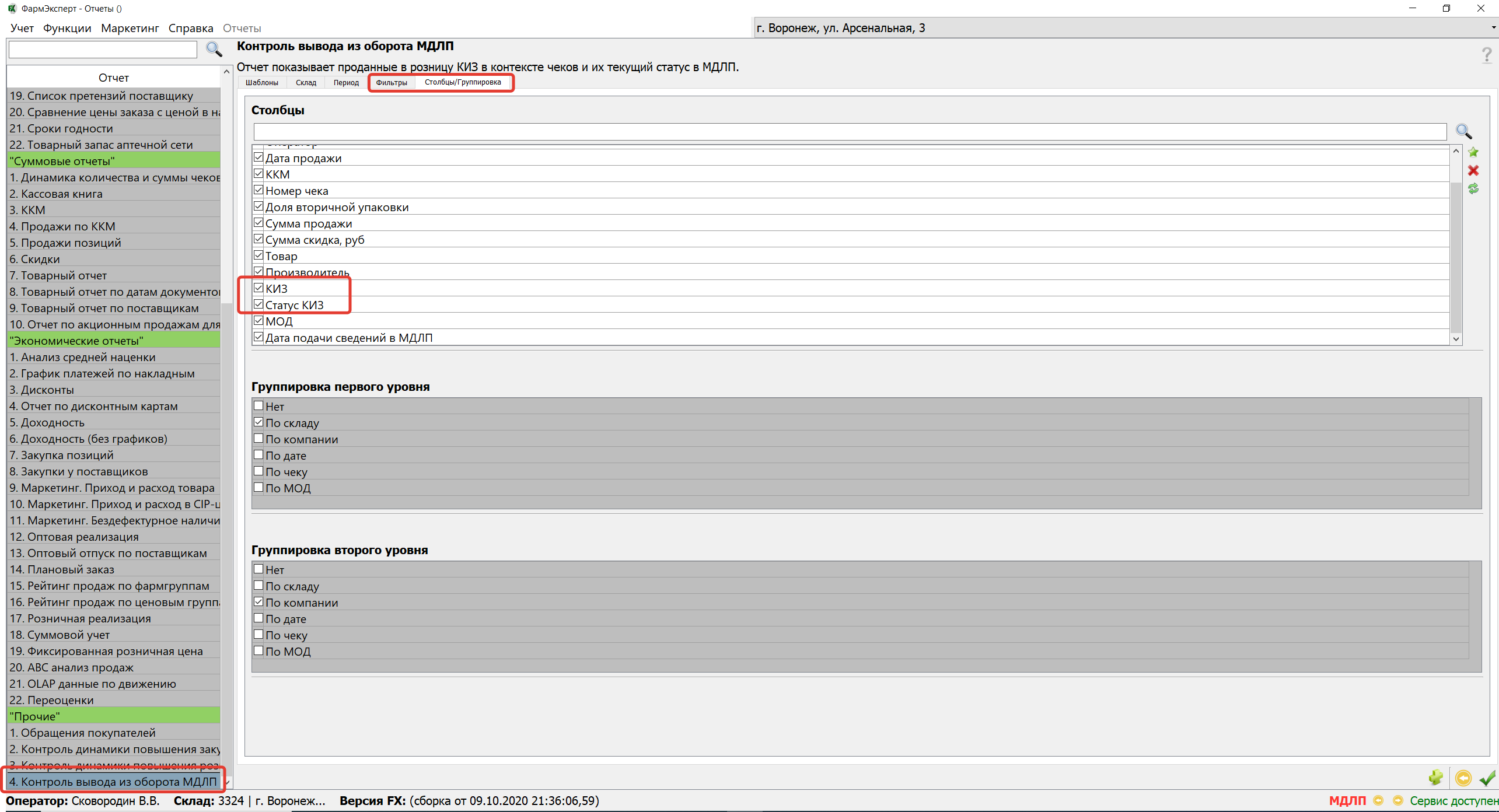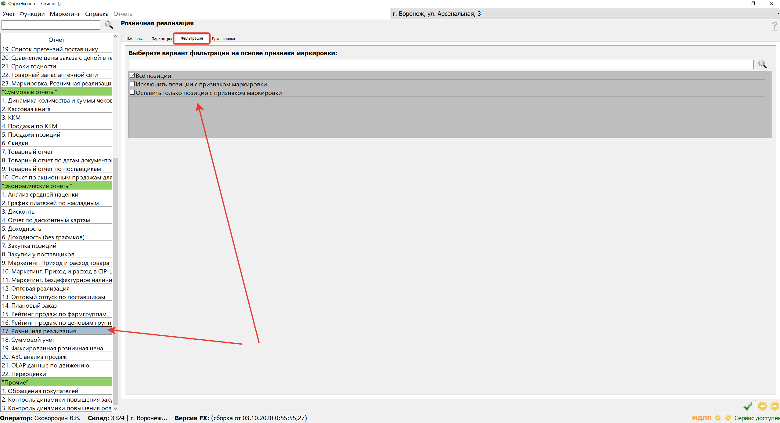 13. В отчёт «Розничная реализация» добавлена фильтрация по маркированным товарам.