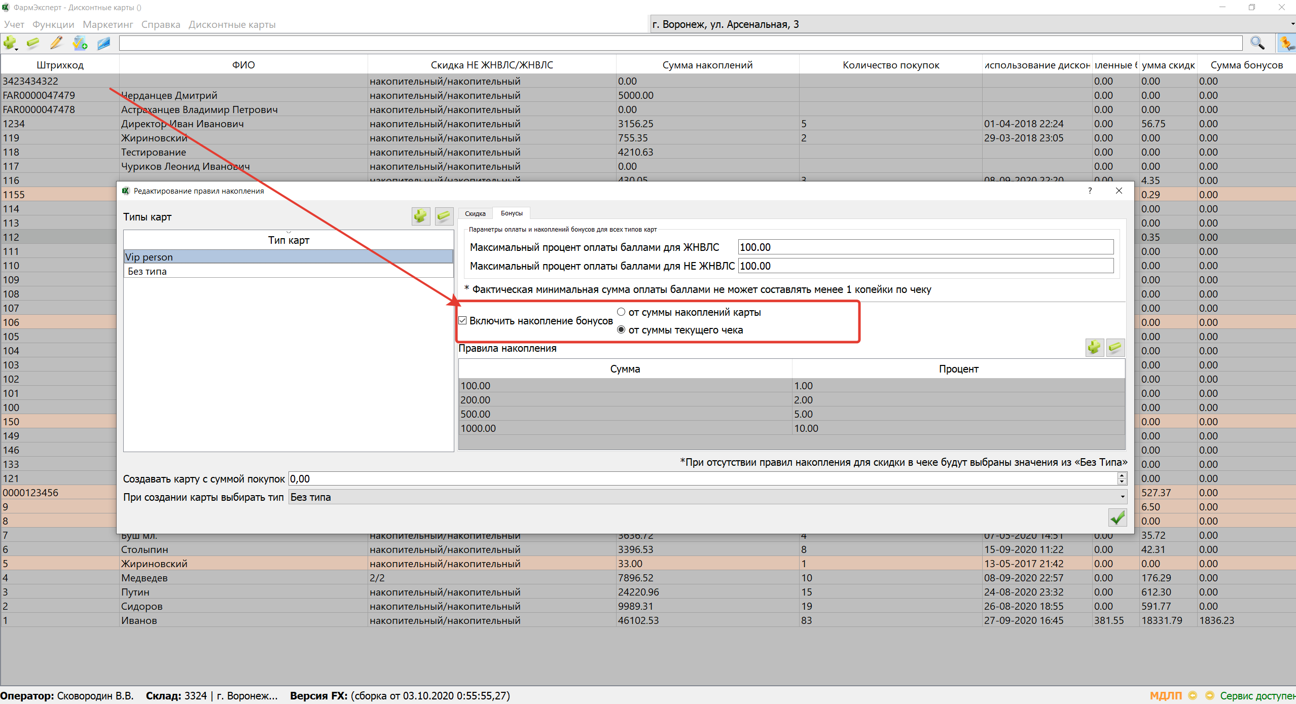 36. Расширен функционал дисконтных карт. Теперь сумма бонусных балов по дисконтной карте ваших клиентов может начисляться не только в зависимости от суммы накоплений (покупок) по карте, но и в зависимости от суммы текущего чека.