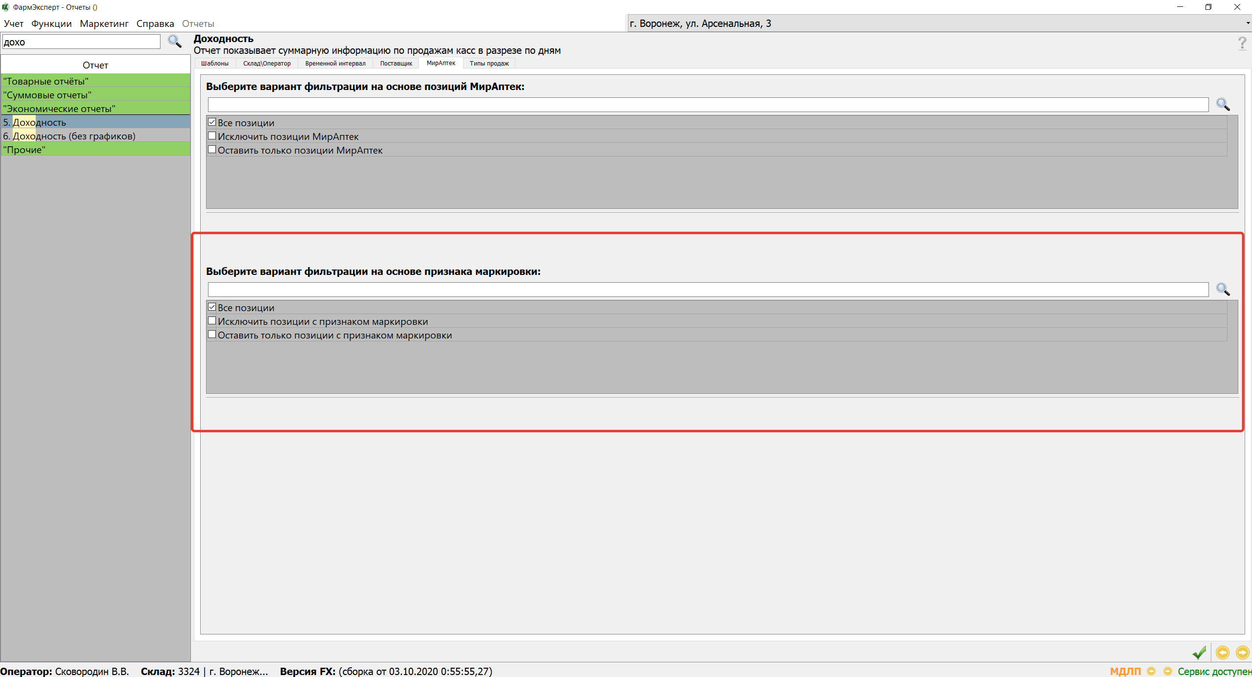 37. В отчёты «Доходность» и «Доходность без графиков» добавлена фильтрация по маркированным позициям.