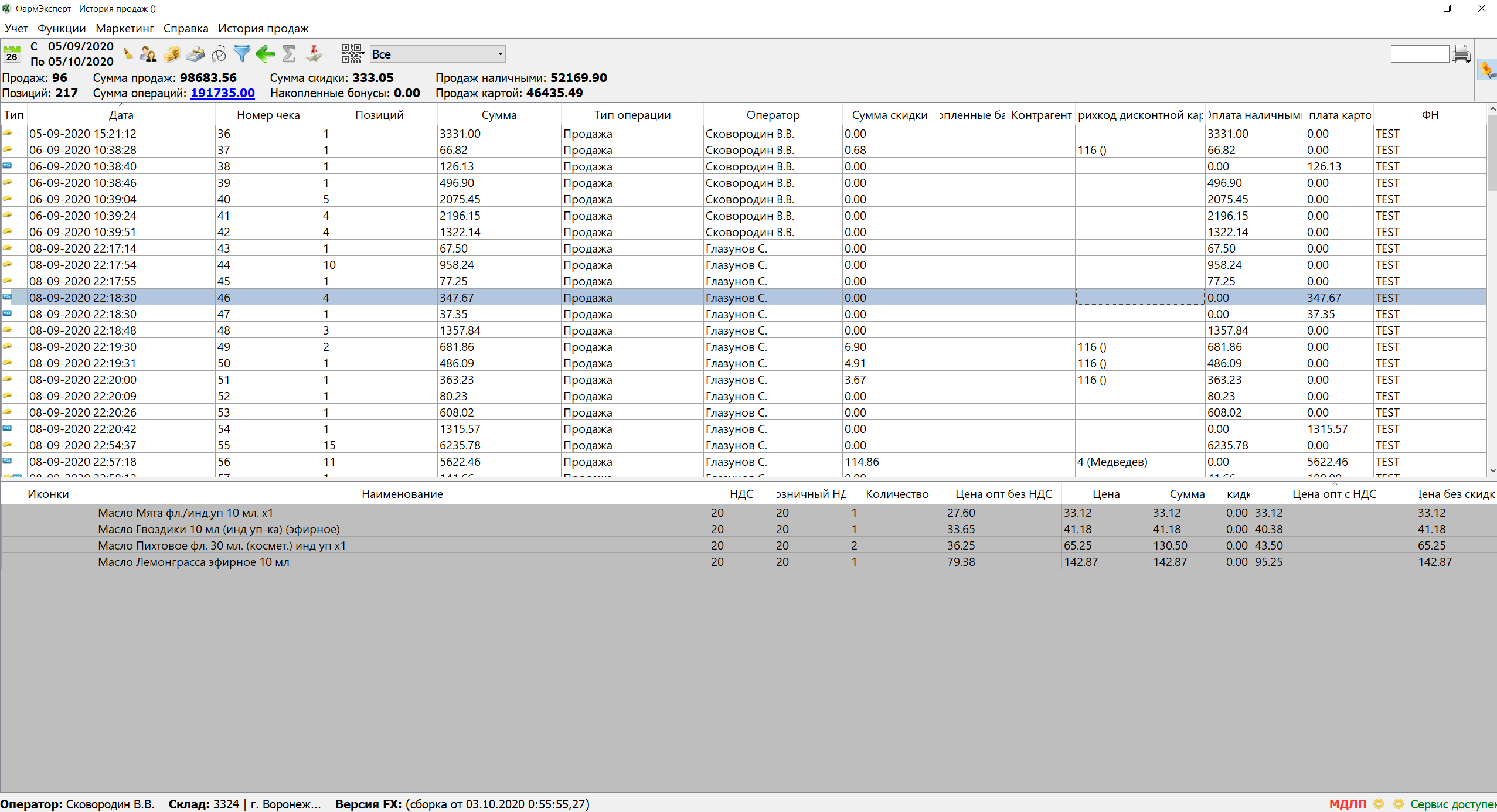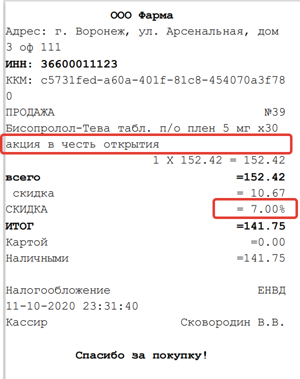 70. Доработан механизм одновременного проведения двух чеков по разным системам налогообложения. Ранее в ФармЭксперт для проведения чека на разных системах налогообложения нужно было провести два разных чека и они фиксировались по разным ставкам автоматически. Теперь мы ещё более упростили данную операцию и ФармЭксперт сам разделяет чеки в ККМ в зависимости от СНО. Подробнее о работе на двух системах налогообложения по ссылке здесь.