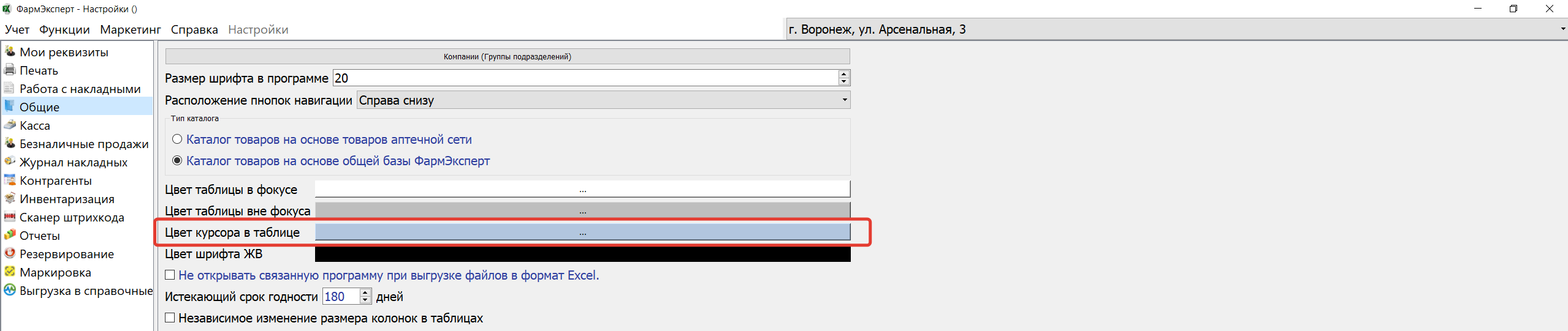 68. Настройки «цвет курсора в таблице» теперь применяется и для таблиц остатков в Журнале накладных и в окне содержимого текущего чека.