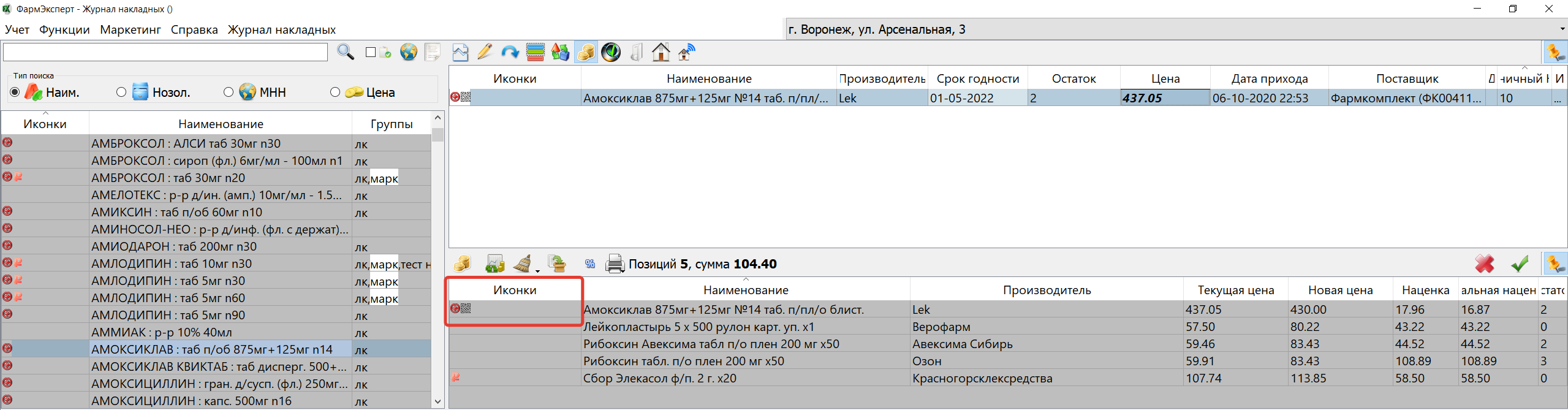 19. В таблицу «Инвентаризация» добавлено отображение внутреннего штрих-кода при его использовании в аптеке (вместо заводского или из накладной).