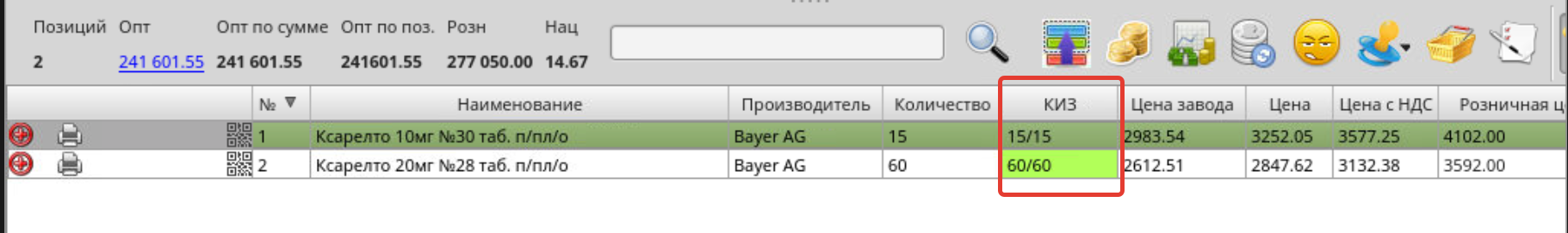 64. В раздел Маркировка, вкладка КИЗы, добавлено отображение связанных с КИЗом документов ФармЭксперт.