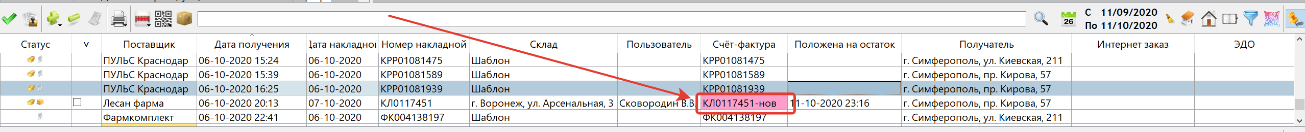 8. Добавлена цветовая отметка статуса накладной, по которой есть маркированные позиции.