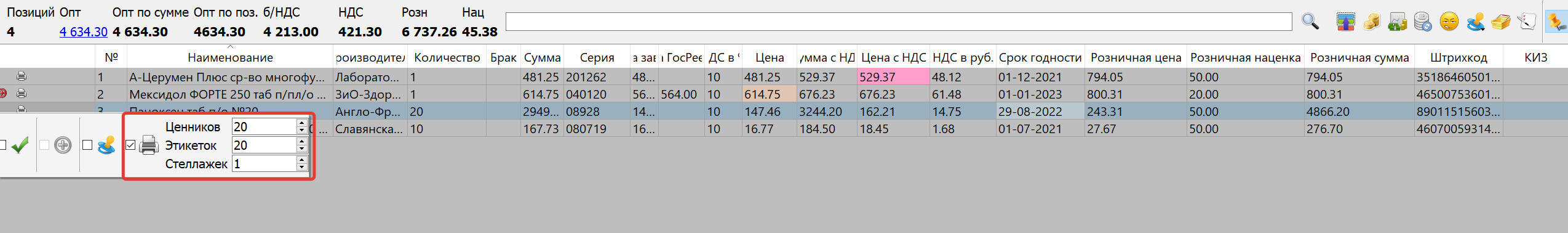 85. Количество выставленных пользователем ценников, этикеток и стеллажных карт, распечатываемых по позиции накладной, не сбрасывается на базовое значение при переходе на другую накладную или закрытии программы.