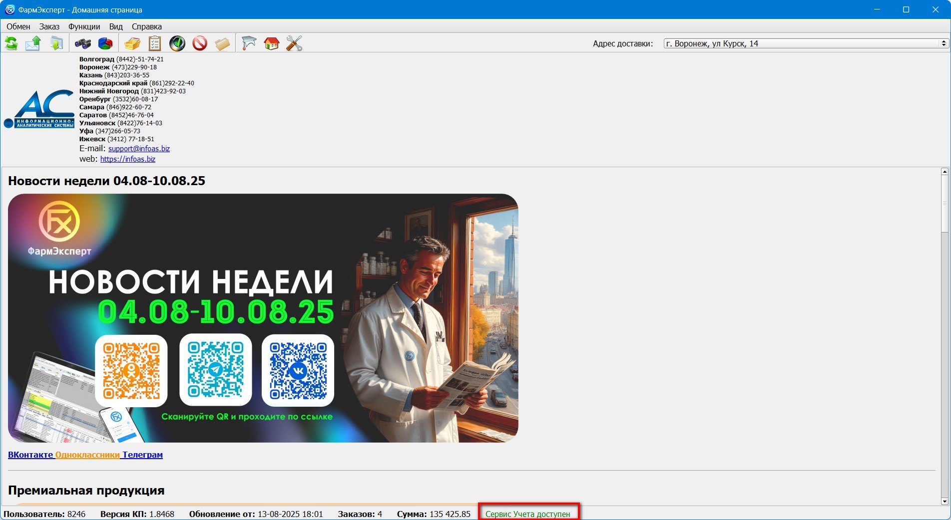 Работа с интеграцией с базой ФармЭксперт-Учет