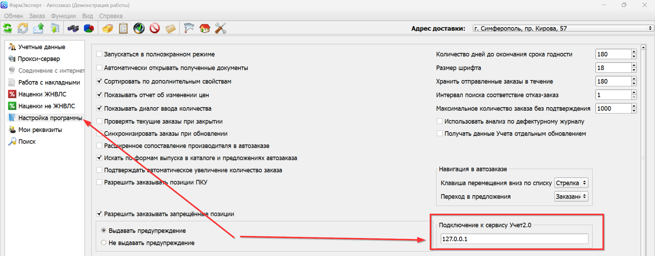 В этом режиме программа напрямую подключается к базе данных ФармЭксперт-Учет. Данные обновляются при входе в нужный раздел, например в автозаказ. Режим интеграции рекомендован нашей командой, так как обеспечивает максимальную точность. Он работает только если обе программы — ФармЭксперт-Заказ и ФармЭксперт-Учет — находятся в одной локальной сети (например, на территории одной аптеки или офиса).