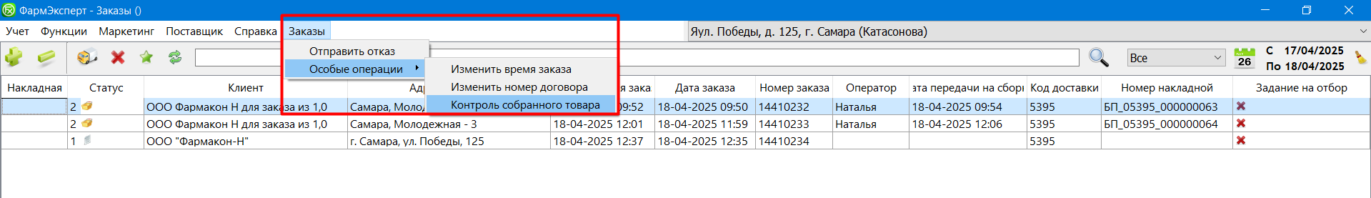 Перейдите в меню Заказы → Особые операции → Контроль прихода.