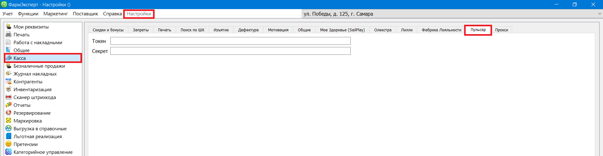 После регистрации, вам будут предоставлены учетные данные, которые нужно внести в настройки (Учет-Настройки–Касса) ФармЭксперт.